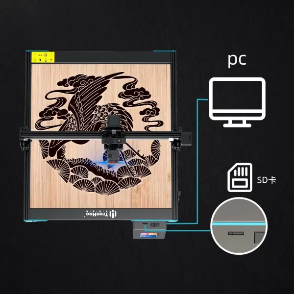 Engraving/cutting can be done by reading the memory card file without connecting to the computer all the way. (Note: This is still equipped with an online jack, which can be operated online)