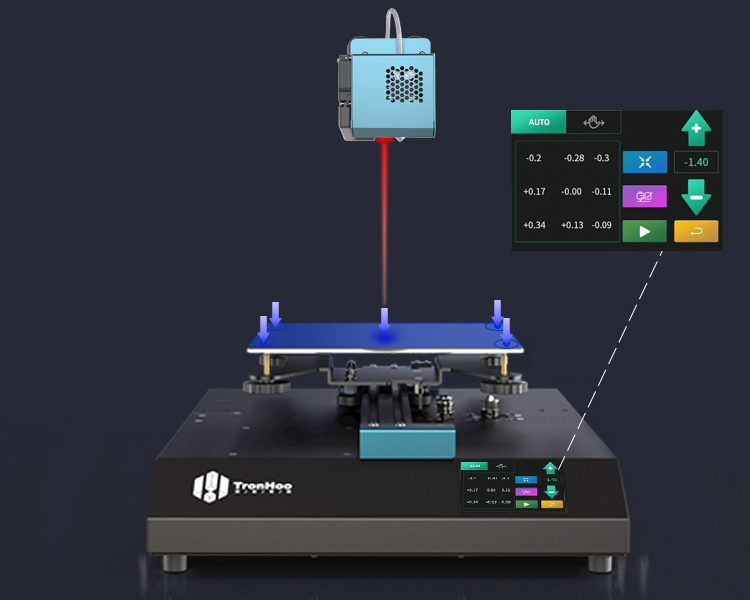 Nivellement automatique de la matrice avec capteur de distance de haute précision et compensation de nivellement dynamique.