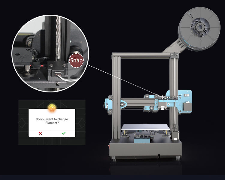 Système sensible de détection de fin de filament en temps réel.Pause automatique de l'impression lorsque le filament est épuisé.